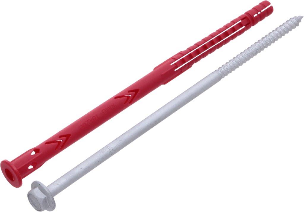 Фасадный дюбель 10 200 RMG - профессиональное крепежное решение для монтажа фасадных конструкций в бетонные основания, кирпич и природный камень. Комплект из 300 штук обеспечивает экономичный расход при масштабных строительных работах.